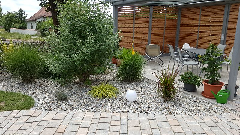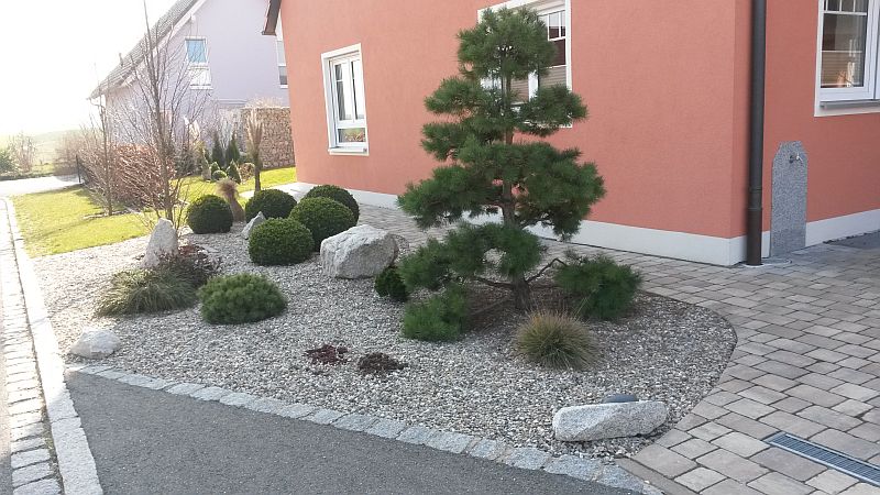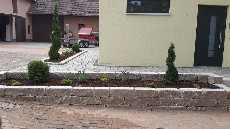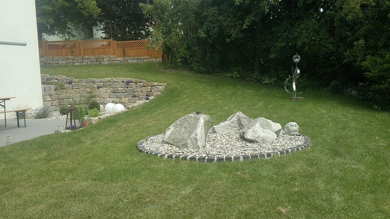 Ein von uns häufig eingesetztes Material sind Natursteine. Sie finden sich in einer Trockenmauer, einem Hochbeet, als Sichtschutz, einer Einfahrt, auf Zuwegen und Einfassungen, auf einer Terrasse und bei Gestaltungen mit Wasser wieder. Des Weiteren lassen sich Stelen oder Findlinge wirkungsvoll als Blickfang platzieren. Pflanzen und Gräser ergänzen unsere Gesaltung und bieten ein einladendes Feeling.